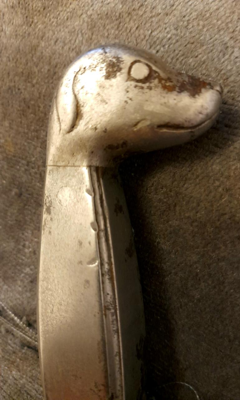 In "Swords and Blades of the American Revolution" (George Neumann, 1973, o.101, 119.S), "...many of the animal headed pommels especially American, are so crude that identification is resolved by calling them "dogs heads".