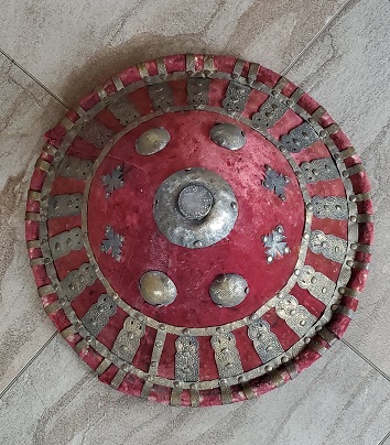 There were two types of dejazmach: yewech dejazmach and balenegarit dejazmach. The latter were more senior, fewer in number, and were allowed to use and display the gold regalia including on shields that ras and above also used. The former, which were the majority, were allowed to use silver regalia, including shields with silver bands arranged in a pattern like in OP's shield.