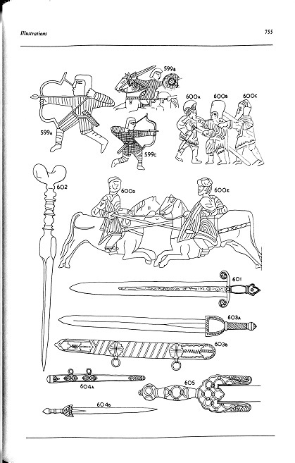 This 'jineta' form is typically seen as with downturned quillons, often heavy and elaborate extending along upper part of blade, with pommels spherical or other singular shapes, not lobated. It seems that the trilobate pommel on this French knights sword may be a holdover from the Frankish swords which of course prevailed through the Viking era, and are seen in variation on most Viking associated hilts. One reference notes that 'Frankish' swords typically had pommels of 3 to 5 rounded lobes in their pommels. While these gave way to the variations of brazil nut, tea-cosy etc of knightly swords of Middle Ages, in the Iberian Peninsula the elaborate Nasrid (jinete) type hilts became familiar. I looked through "The Archaeology of Weapons" (E.Oakeshott, 1960) and while he thoroughly classified pommel types into what has become the guidelines for descriptions used, this trilobate form is not mentioned. Type M however has the 5 lobed type listed as 1100-1325, and noted as the last survival of the 'Viking principle' of the lobed pommel (above lower guard). This of course alludes to the 'Frankish' style noted of 3 to 5 lobes. I read through "Two Swords from Gibraltar", David Nicolle (Gladius XXII, 2002, pp.147-200) which decscribes two swords of 12th c. found in "Martins Cave" by an archaeologist in 1867. These are noted as representative of the Islamic swords of Andalusian and Maghribi warriors of the 12th c. and both have hilts with spherical pommels and only slightly downturned quillons. While Berber mercenaries brought their styles of arms and tactics to the Andalusian peninsula in the 11th and 12th centuries these precluded the defined 'jineta' styles etc. which apparently fully evolved much later. The Nasrid swords with elaborate hilts and significant downturned quillons are actually derived from Ottoman and Mamluk sword hilts of 13th 14th c. This tri lobed hilt on the French sword we are discussing does seem to be somewhat of an anomaly, as I went through the entire volume of line illustrations in the comprehensive "Arms and Armour of the Crusading era 1050-1350" David Nicolle, 1988, and cannot find any corresponding example. As far as comparison to Nasrid (jinete) forms, the only thing close is the sword of St.Ferdinand of 13th c. which has a pommel which is somewhat trilobate in what has been termed a maple leaf shape. (see attached, #601). With the description by Helmut Nickel, my only suggestion toward the comparison to Chinese influence would be the trilobate patterns seen in Tibetan swords' pommels, which could only tenuously compare to this triple SPHERE pattern. I cannot say I am familiar with any such type pommel in Chinese hilts, however the 'three' element is important in most of the major religion dogma. Last edited by Jim McDougall; 17th February 2026 at 06:05 PM. |
