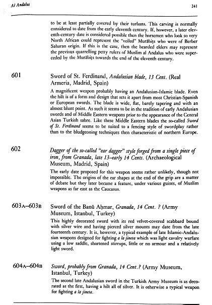 As expected, Calvert (1907) had nothing specific to Jineta swords, and the illustrations shown are of 'Hispano-Moresque' forms as termed by him . These are also termed Nasrid with reference to the Muslim dynasty of Granada 1232-1492.