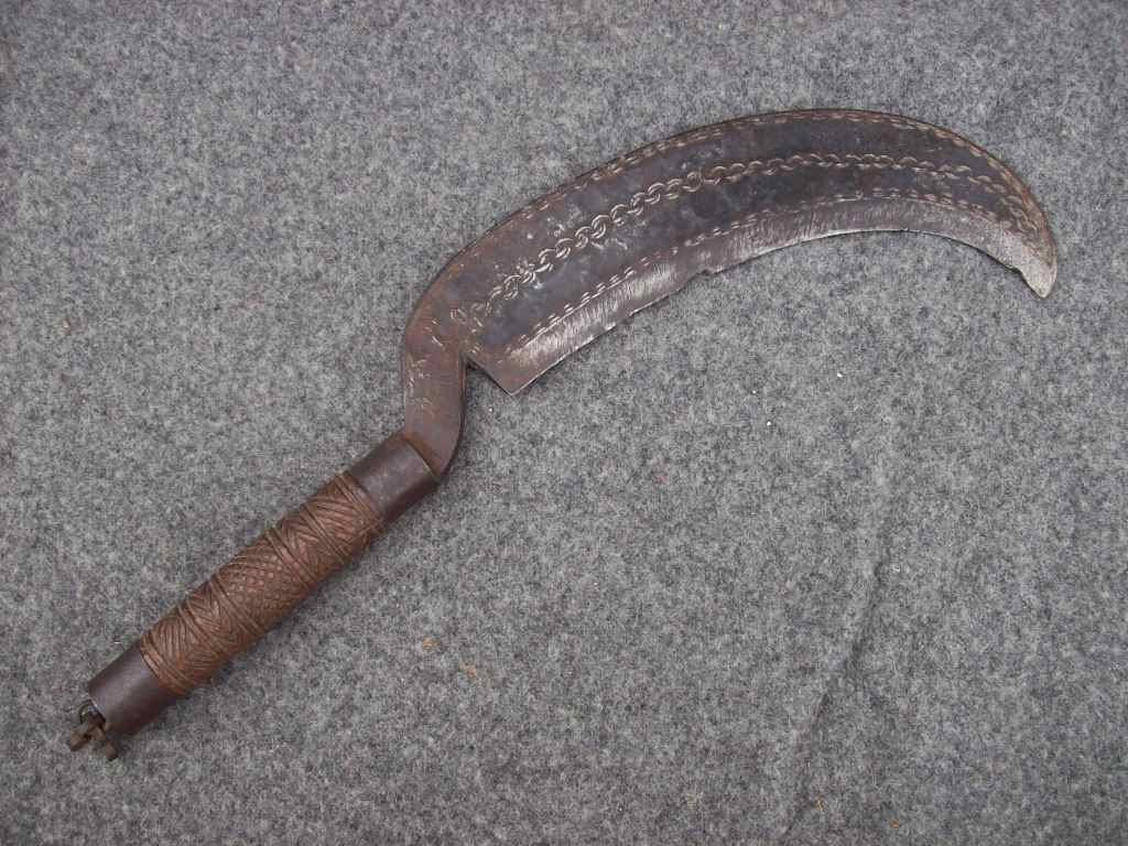 Guess I'll get in on this, more so, than just my mystery sword. Here are three Items, I've had for a while now. The spear, and axe, I know are Naga. The sickle, I dunno. The ebay auction said it was a Vietnam bringback. The spear has been repaired, and the axe, could be tourista. Well, here they are.