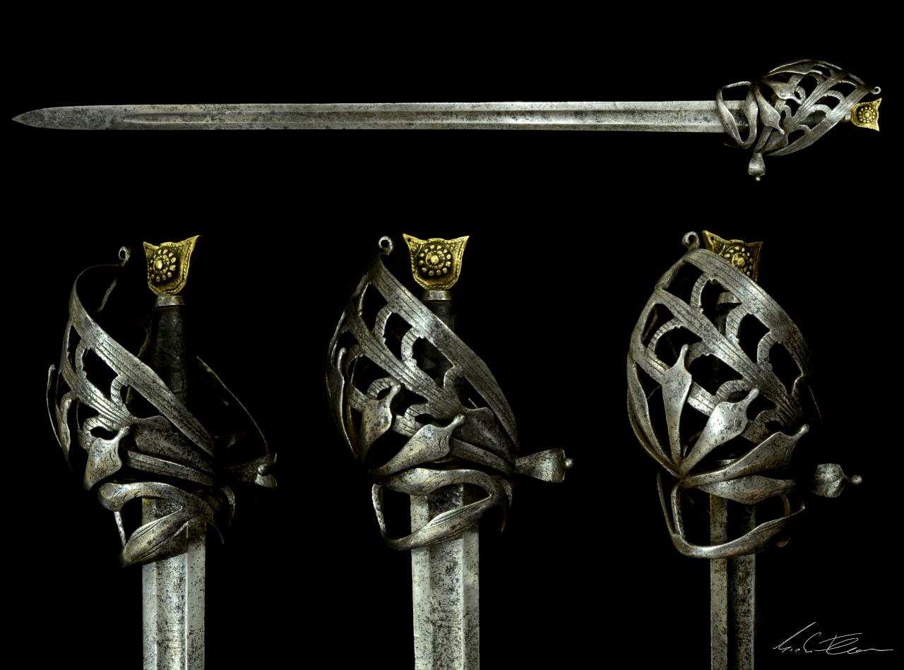 Cathy, these may be questions bordering on my being simple minded, did the average length of the handle change over time? Did the balance of the blade shift as well? Am I correct in thinking that many of these were cut and thrust weapons? In your research for the article did you find that they became more thrust orientated as the hilt became more intricate? Or did they continue to be manufactured for a diversity of fencing styles? |
