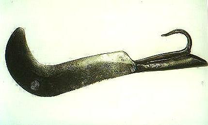 As for the blade, it blends different features of a pennato (billhooks with a hatchet blade on the back) and a mannaia: http://www.vikingsword.com/vb/attach...hmentid=181548 As far as I understood, on mannaie, the back edge was to crack the skull to get access to the brain, but it slowly evolved into something purely esthetical, with no real function. Probably as general steel quality increased, and there was no need to save the main edge. But on yours, the back edge has been clearly sharpened and used. As for the handle, it's a rather interesting form I've never seen, but it's clearly one of the long time evolution of the handle shape we see on the billhooks from Pompei and Moregine: http://www.vikingsword.com/vb/attach...hmentid=181545 http://www.vikingsword.com/vb/attach...hmentid=181546 We see other intermediary forms like this undated late Roman thing, halway machete, halfway billhook, halfway falchion: http://www.vikingsword.com/vb/attach...hmentid=181543 And this later, 10-11th century Italian billhook: http://www.vikingsword.com/vb/attach...hmentid=181544 It also evolved into a form of billhook with a socket handle, rather typical of Piedmont: http://www.vikingsword.com/vb/attach...hmentid=181547 It's very interesting that on your mannaia, the evolution went to make both the back and front projection simply flat and square. I'm saving this into my personal data, cause it's another form of evolution of this handle termination. And it's really specific to Italy, or at most what used to be the Duchy of Savoy and the kingdom of Piedmont-Sardinia. So it's a bit hard to pin exactly where your mannaia comes from, but it surely is Italian, and I would likely say late 19th or early 20th century. If one day you want to part from it, think about me! Edited to remove all exterior links. For some reason, even though using the IMG tags, the images won't appear in the post. |