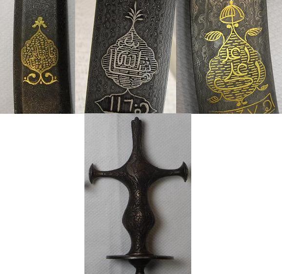 Here's another attempt to read the inscriptions on your sword from another person: "Yes, the part at the bottom of the inscription is straight and easy to read. The problem is in the part at the top. This part is deliberately meant to be cryptic. Perhaps, to help decrypt it, the number 66 is given underneath it. Which alphabet, Greek or Arabic, was the reference for the inscriber (as far as numerical values of the alphabet)? Could 60 be also 30+30, 40+20, etc.? Finding answers to these questions may help. Most likely this part of the inscription is written in Arabic characters, and is supposed to be read left to right. Left to right, it starts with الر , then comes تا , and finally comes با . "Al rataba" is a word in Arabic that describes the actions of some people, especially when these actions are routine. But be ware that this reading is a guess. There may be other readings." Hope this helps! As ever, Ahmed Helal Hussein |