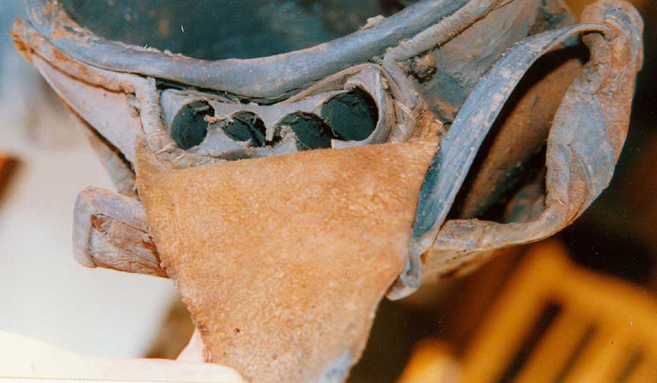 The earliest patrons or cartridge containers (Patronenköcher) seem to have been made as early as the 1540's, mostly in Nuremberg but, in the 1580's, also in Brunswick and Suhl, the latter for Saxony. The earliest dated sample known is of 1554.