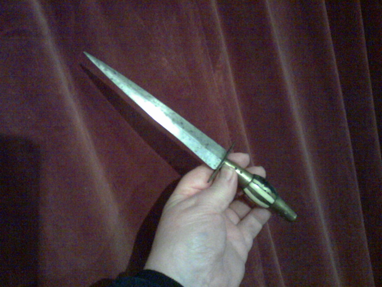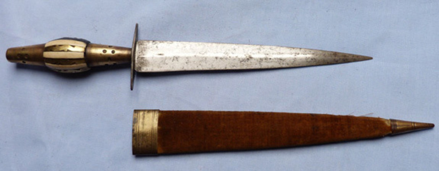 It is unclear why these were termed plug bayonets if they were actually daggers, though the spindle grip type obviously could not be used in a gun barrel as Udo has noted. While the Spanish held to their smooth bore miguelet lock guns well through the 19th century, whether they actually used the plug bayonets in original form inserted in the barrel seems unlikely.