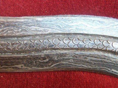 It looks more recent but of good quality it shows a nice pamor. Here are some close ups of the blade.