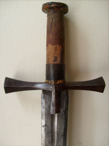 It's not a stamp - it's engraved so not a maker's mark. Identical on both sides. The sword is a quite heavy-bladed one, doesn't seem that old but as you can see, a particularly nice crossguard. Any ideas about the curious mark? |