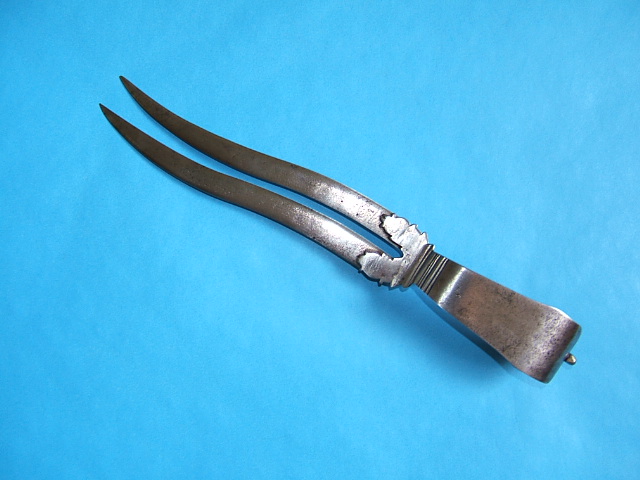 The reason I want to borrow bichwas is that I feel I could learn more about them from actually handling them. I'm a kinesthetic learner. Since they run at prices I cannot afford, it'll be years and years before I can even entertain the thought of buying my own antique bichwa. They are intriguing weapons of India, and I have a fascination with the subcontinent's close-combat methods and weaponry, from bichwas to bagh nakh and jamdhar. In particular I am interested in 3 types of loop-handled bichwa. These are the ones whose blades run along the same plane as the hand (example1), ones whose blades are perpendicular to the hand's plane (example2), and ones with double blades (example3). An example of the blade's plane being perpendicular to that of the hand can be seen here. I hope I'm not being confusing. Those pictures are not mine by the way, no plagiarism.
