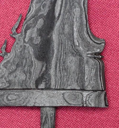 The greneng is something that simply does not exist in the Javanese lexicon.The other blade features have a very stiff look to them, they do not flow as is usual in Javanese work. It is difficult to comment on the material, because of the variations that can occur in the photographic process, however, if the photos are an accurate representation of colour and texture, this material certainly has the appearance of some of the material that comes out of Madura.