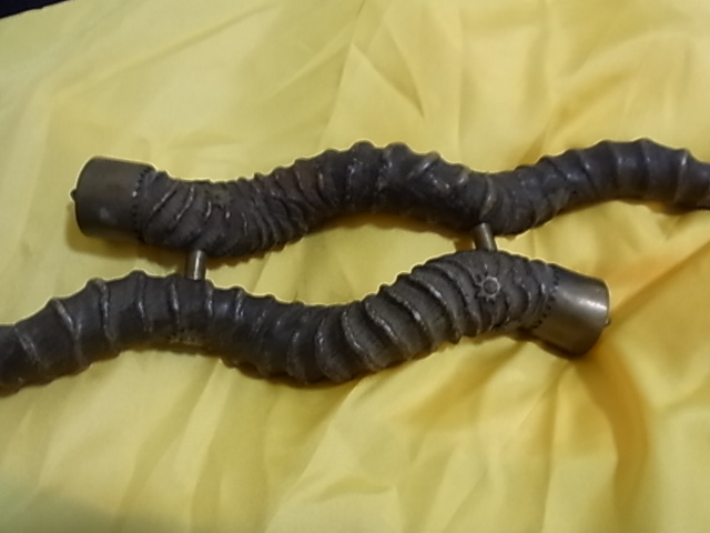 14inches overall with double 8 inch blades. If it's a type Bichwa then it's probably left handed. Hasn't come in yet. Intriguing, blades may be suspect. So much work went into it I had to see first hand. It coming from Nesher, Israel. Comments and advice welcome, Steve |