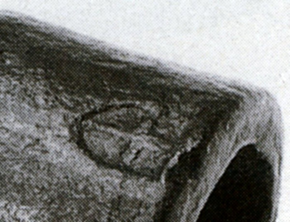 The manufacturing techniques, the short actual barrel length just sufficient to receive a stone ball, the angularly reinforced breech with the big molded touch hole on top and the state of corrosion would all suggest a small stone-ball firing gun (Steinbüchse) of Northern European provenance and an age of ca. 600 years; the catalog description labeled it as 'Chinese, 19th c.' though.