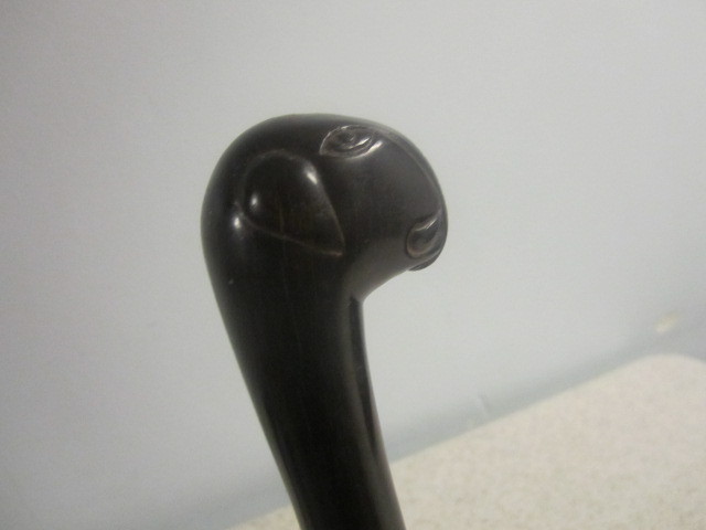Hello Detlef, Like Rick I am pretty sure that this is supposed to represent an elephants head with the trunk and the short tusk shown quite clearly. The small ears would be an Asian elephant if memory serves me correctly. How the seller could see a rams head in this carving is beyond me.