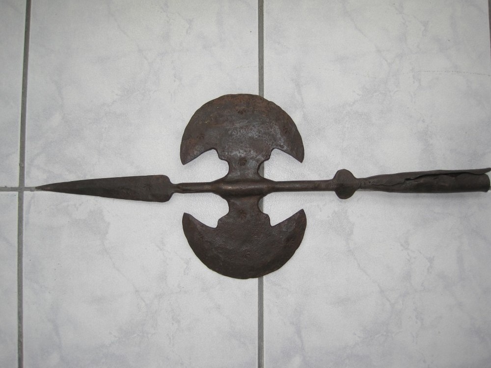 Hello.What do you think about this medieval halebard?Its length is 60 cm and it does not have a wooden handle.No visible welding traces.I do not know what the signs appear on her.Is it an old medieval thing?THANK YOU VERY MUCH .
