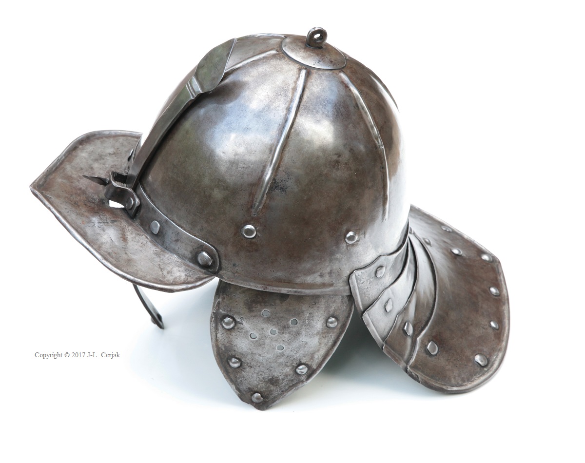 This type of helmet were made in large series and we can’t find in most of them some marks made by armourers to recognize the parts of each helmet before assembly.