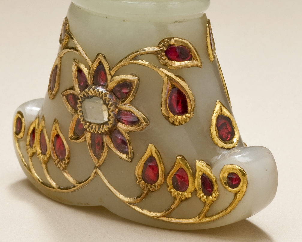 And here's 18th century nephrite jade handle with all jewels and gold removed, so you can see the original carvings before they were filled with all that bling:-)