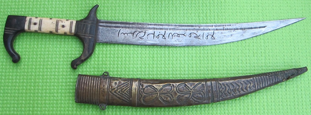 Turkish knife (bichaq ?), first half of 20th C--a tourist souvenir. Sorry, can't help with the translation.