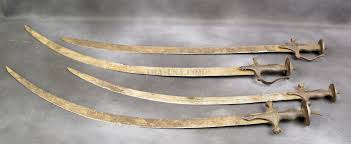 I would be grateful if anyone could tell me where this Tulwar originated. I have researched quite a lot of previous threads, the internet and reference books but have been unable, so far, to satisfy my curiosity. It is a very plain but I think a very elegant weapon made for combat. Its length and style lead me to think it must be for a cavalryman. The curved, single edged, blade looks European to me and has no ricasso, two broad fullers start at the hilt and run for approx. 18cm before the top fuller splits into two making two narrow fullers which run together with the broad fuller to a distance of approx. 18 cm from the point, there are no marks on the blade or hilt. The hilt is the commonly termed "Indo Muslim" type And seems to be silvered iron or steel. I have tried to find a similar one having the same langet design and also the same style and length of the stem above the disc pommel without success, hence my post.