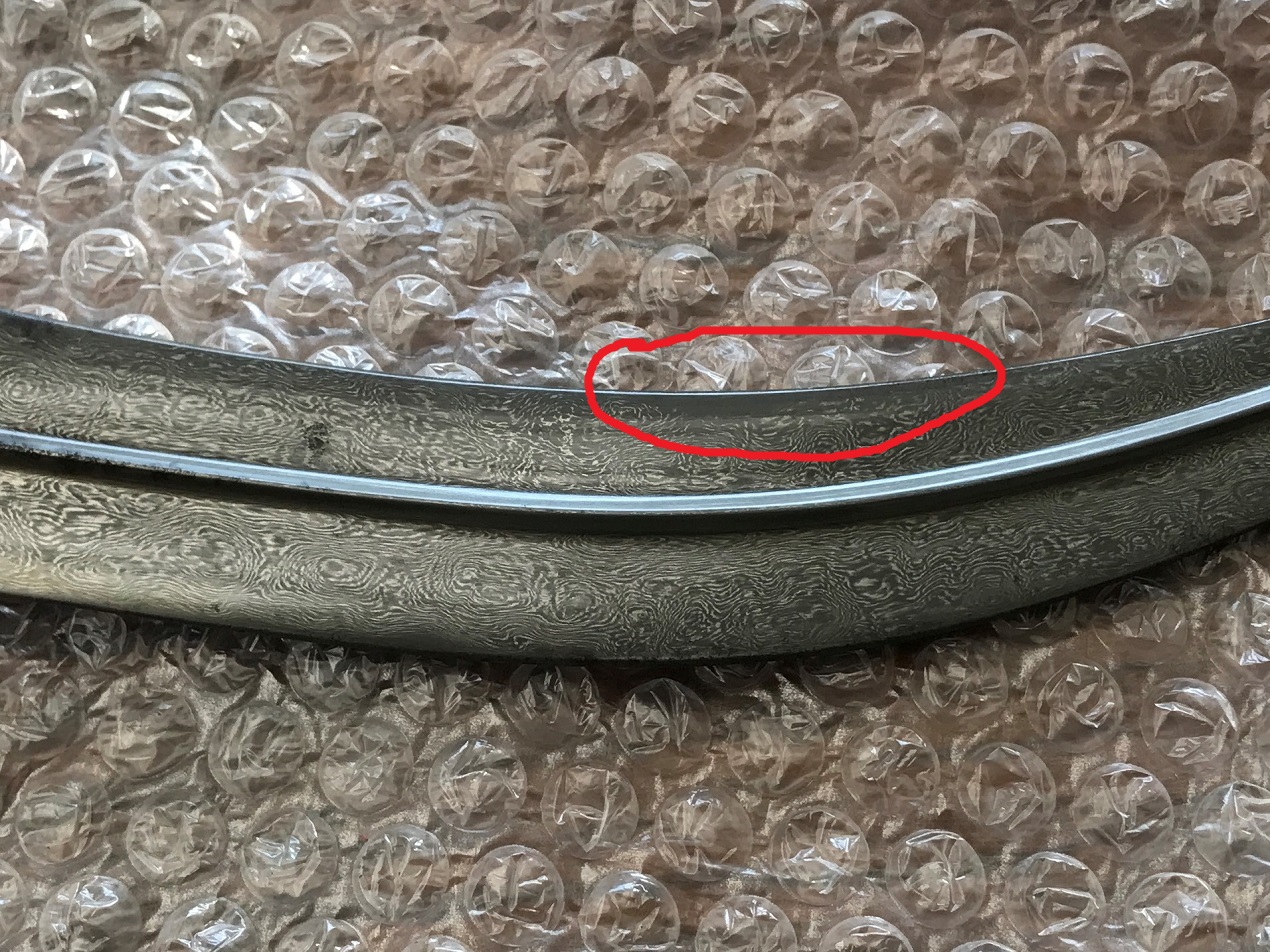 there are jambiyas found on Muslim parts of Borneo but frankly said I've never seen one from there with wootz. One word regarding the fading, it's located at the sharp bend from the blade and at the edge and I believe that this caused by strong and heavy beating by the forging process. And do you know from which sort of ivory the handle is carved? I don't think that it's elephant ivory. Regards, Detlef |