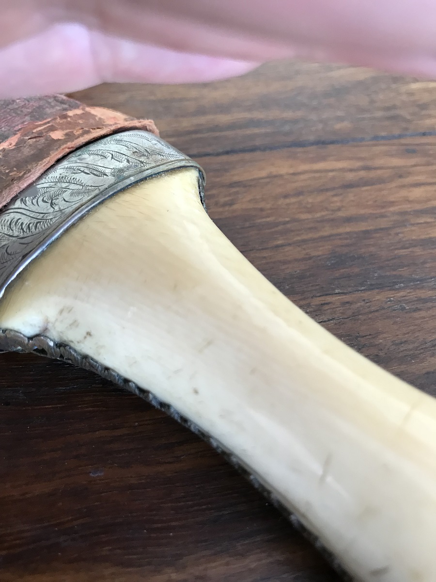 Also agree on the metal repair of the handle. The scabbard is obviously not original: too poor for the dagger. But it is this jambiya’s fourth or fifths one. Overall, very good and old piece with many attempts to preserve it for actual use. |