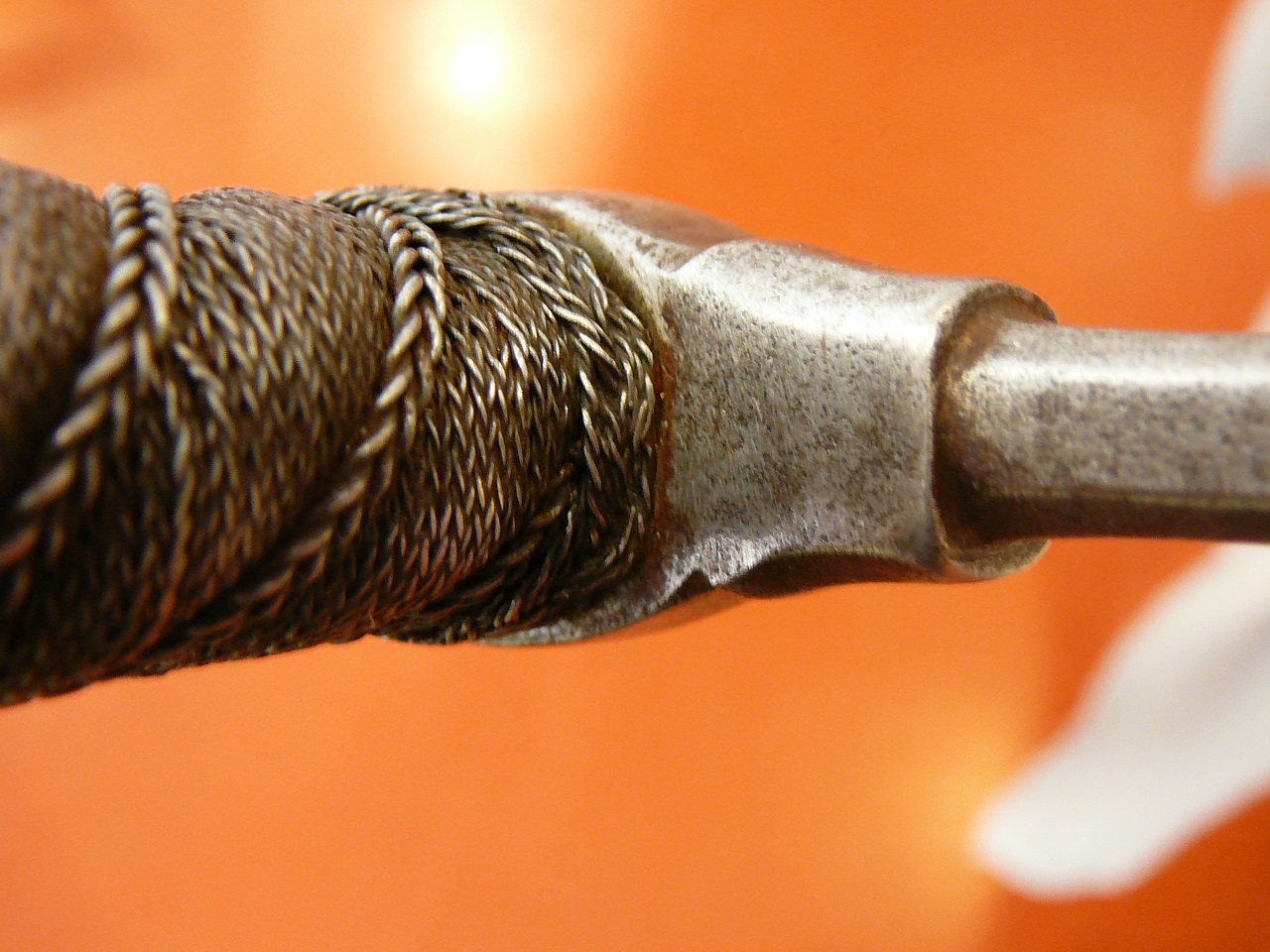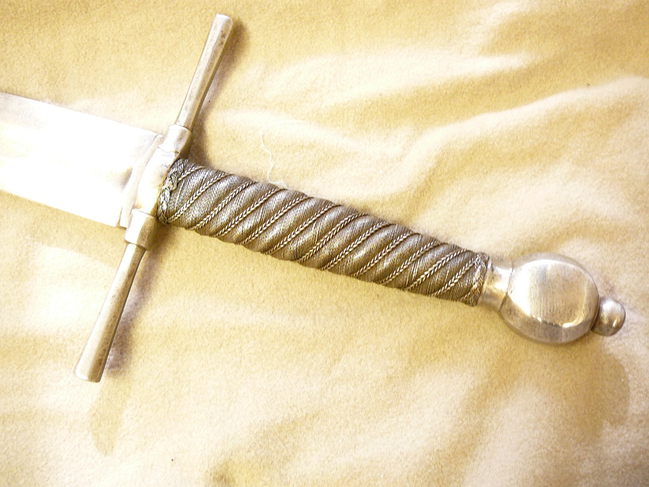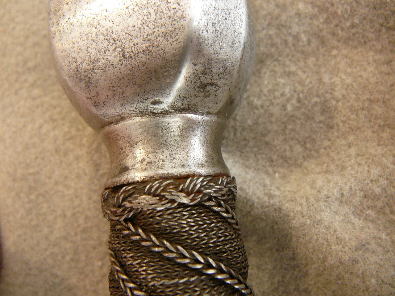 Anyway , here is some photos of end part. I suppose that it is not thread, or at least end part some way "feels" like it would be forged or hammered, to attach end of blade to it. I could not see if tiny coffee bean side last round part is part of pommel, or separate part
