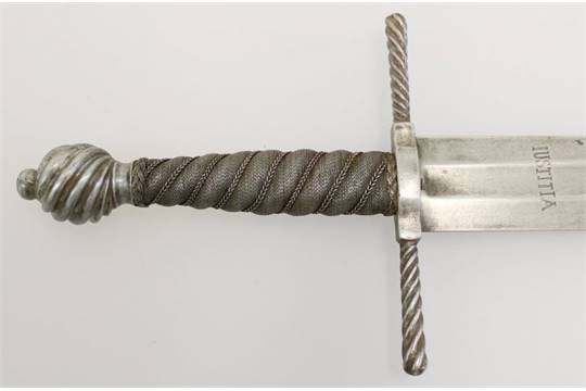 During a spring auction 2015 of a German auction house a sword of justice in the style of 17th/18th century has been sold. The hilt of it is in my eyes very similar to the piece in question.