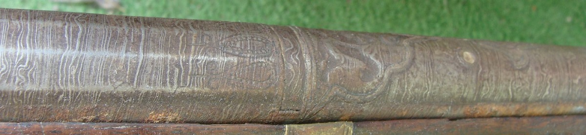 After another look, it does appear the barrel has a small trace of silver wire inlay. That would be very common for this quality of barrel. And I can imagine other decoration. I'm pretty sure the barrel is either Ottoman or Persion. The "raised" round holes from the chiseling do seem to suggest stones of some type. If so, you can imagine what this barrel looked like when new. The barrel and lock should clean up very nice. It's a neat and interesting gun. Ivo: Let me know if you ever decide to trade it. LOL Rick |