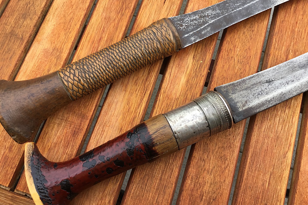 Incidentally, the same sword-dao is often attributed to the Naga--and the Naga do use these swords occasionally--but they were all made by the Kachin as far as I know and obtained by the Naga through trade, battle, or otherwise "appropriated." The example you show is typical of the traditional sword of the Kachin. However, during the mid- to late-19th C. the Kachin steadily switched to straight or curved swords made by the Shan, some of which were adorned with silver. Most of these Shan swords had the usual Burmese three-part hilt of a central piece made of wood/bone/ivory/etc. flanked by two metal ferrules of iron/brass/silver. Why this change occurred is unclear, but the transition was reported by a British administrator in Burma during the 1890s who noted that use the older sword-dao was limited largely to the northern areas of the Kachin territory at that time. [My books are presently 8000 miles away, but I will put that British informant's name and the reference here when I next find it.]