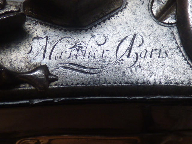 Thanks again to Corrado and to Jasper. Now that I know that there was a gunmaker named Mazelier (which I did not know before) I can see that name in the engraved signature. Even so Jasper's list shows that the name Mardier did exist, though not necessarily in the gunmaking trade.