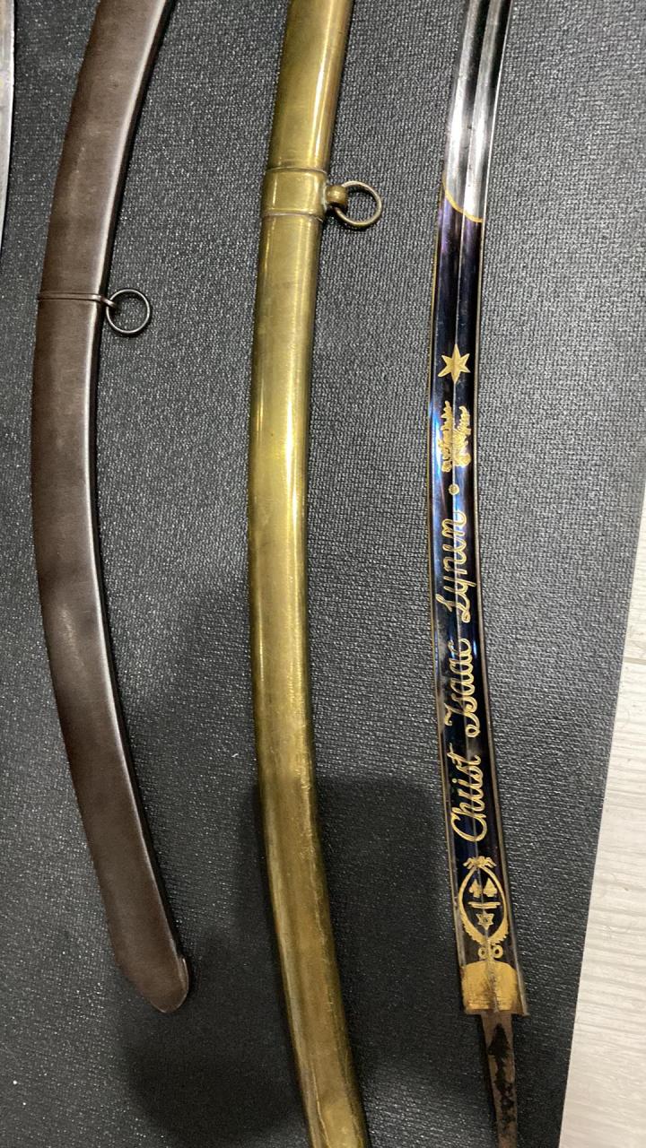 This is my latest arrival and as you can see it has a very nice blade, unfortunately the hilt is missing but everything else is present so it will be restored to ebony in the near future. My question however concerns the markings, so on the blade it reads "mit Gott für freiheit und vaterland" translates to "With god for freedom and fatherland" very common on German sabers, the other side is much more interesting for she bears a name "Christ Isaac Lynem" or Lynim. I originally thought it was the name of a furbisher or something but now that the sword has arrived there is a mark on the spine EH the H looks a bit weird so it could be something else. Also the star of David and two candles can be found near the ricasso (not to be confused with a French Lily). Anyone know the initials of this maker? |