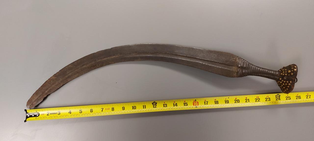 I recently picked up this item. I'm quite certain it is African. The pommel and use of brass tacks is a style I have seen, but I can't place. Nor, can I remember the correct attribution to use as a search term to find past threads. The dimensions are shown in the photos. It is sharpened on both sides and the fullers are offset (rather than directly opposite on either face of the blade). My first thought was an unusual variant of a shotel (gurade), but the proportions and overall style seems more West or Central African. So...what are your thoughts? Thanks much! -Rob Last edited by shayde78; 20th October 2022 at 04:02 AM. Reason: Forgot photos! |