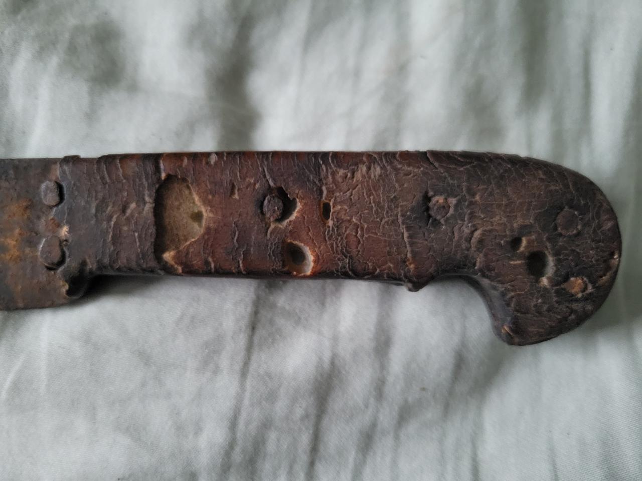 Knife #1 is the first of the martial weapons, this knife seems to be a simplified variation of a style of knife found in Genoa. An interesting feature of this knife is the presence of a crudely checkered area of the blade stem showing that this knife was meant to be handled with the thumb riding along the flattened blade stem.