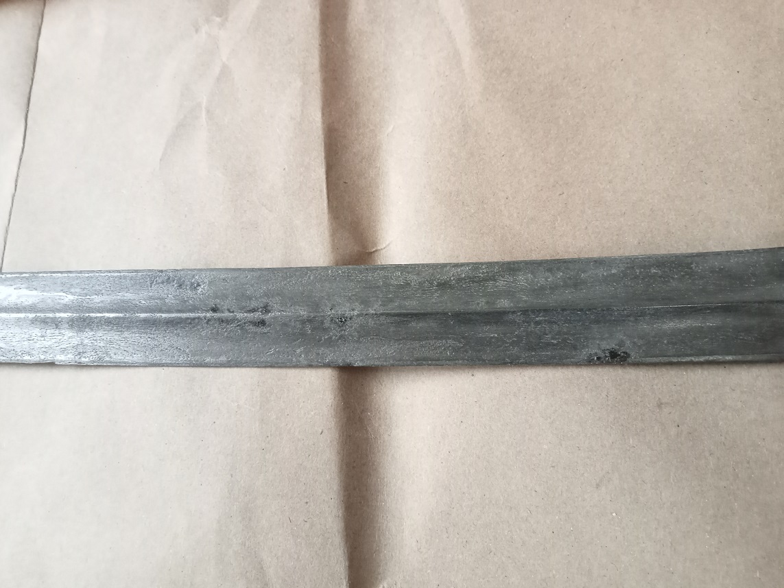 Back from the weekends antics and came away from a local collectors fair with this one. I am still a little ambivalent about it, but the price was right and I like the blade, not so sure about the mounts. Blade length dead on 19 inches, or 482 mm..... And yes, I think the blade has been over-cleaned as well!