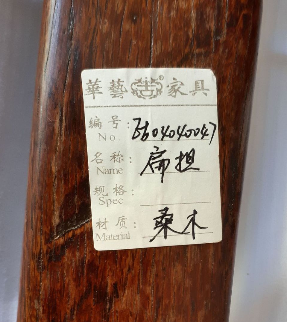 AI: "This item is labeled as a jujube-wood carrying pole from Hua Yi Furniture, with item number B604040047."