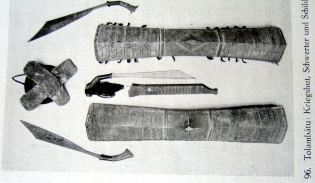 - Scabbard; the only source where I have found a resembling scabbard is in the attached picture from Grubauer's Unter Kopfjägern in Central Celebes.