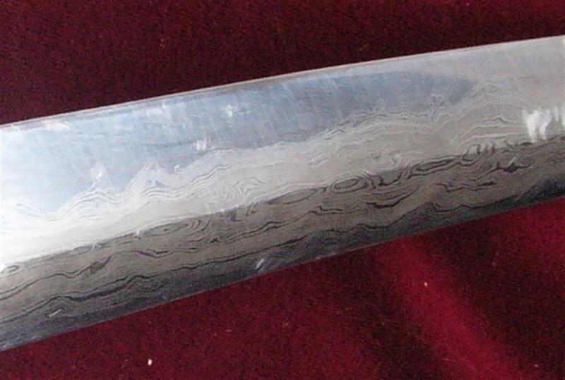 Here is a sword that was presented to me as a very unusual "Damascus" blade in old gunto mounts. "Blade much older than the mounts." I know very little about Japanese swords. Offered by a local dealer who is a world class expert in another collecting arena.