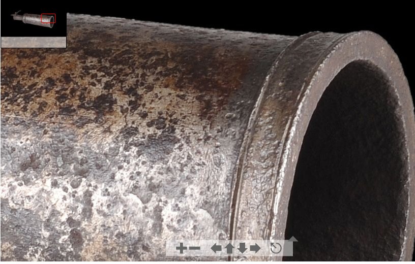 Next there was an interesting modern fake of a late medieval handgonne, composed of what looks like the rear part of a Thirty Years War matchlock musket barrel the tang of which had been turned by ca. 90° resulting in the stunning fact that the pan and cover now blocked the sight when aiming, and another totally inapt large bore fragment which had obviously been put into 'aged' condition by crude hammering of the outer surface. Of couse, the bore is much too big for a genuine late medieval handgonne while on the other hand the barrel walls are ridiculously thin and could by no means revoke the correct impression aspired.