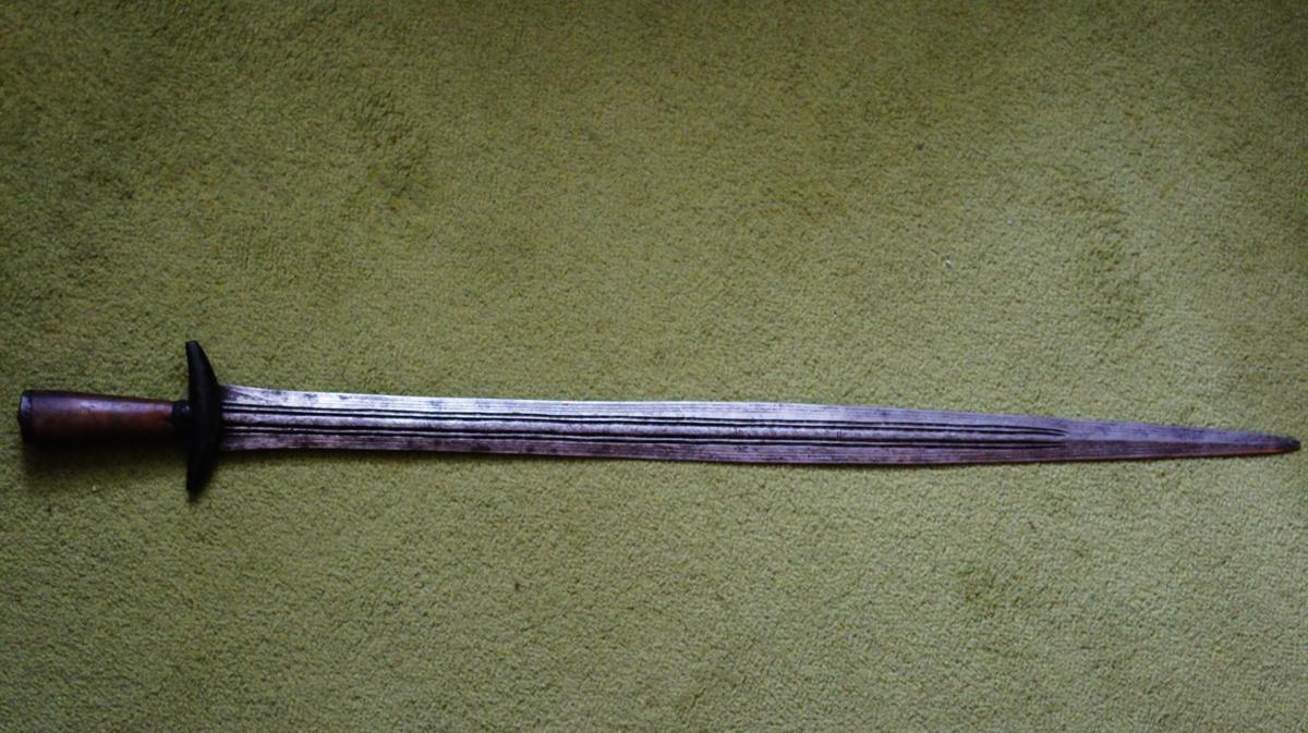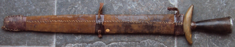 This is a Guduf sword, a people living the in Mandara mountains region on the border between Nigeria and Cameroon. Numbering about only 30,000 they are a small group, as are many in this region. These have often been refered to as Kirdi - but that is a general label for pagan/animist peoples of the Mandara region and not a precise ethnic term. Interestingly the Guduf believe that the takouba of the Fulbe/Fulani was based on their sword design. While likely not entirely true, this may reflect the probable origin of the takouba in older pagan sword designs, many of which were preserved in the Mandara region due to the isolation of the peoples who largely fled there to escape the Islamic kingdoms of the Sahel. I do not have the sword in hand yet and will not until August due travelling on another continent, but the seller pictures were good enough to share I think. The blade should be iron and relatively heavy, flatter on one side with the incised decoration being reserved for the presentation face of the blade (a fairly common occurance in African weapons). The hilt is cow horn. |
