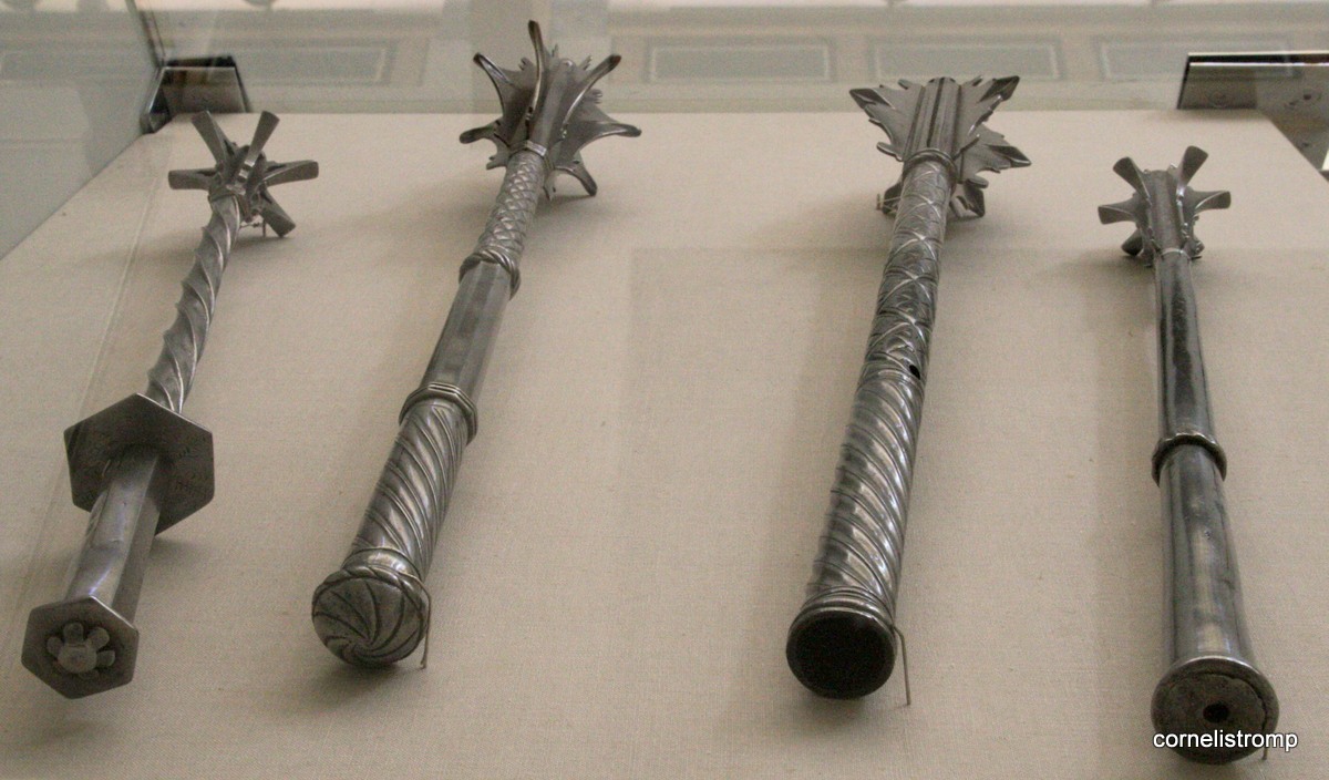 Iam sorry but no matter how much you want to believe it, it is sure to be a later reproduction and not an original mace. the faint lines and very low quality of the fleur de lis in your pictures clearly show that it is a casting and no chiselling in relief. The mace from the berlinerzeughaus inv. nr4453 you posted, is of a totally different category, high quality carving and etching and non comparable to the coarse casting/workmanship of your mace. hereby also attached some pictures how a 16th-century mace should look. Best, Last edited by cornelistromp; 9th August 2014 at 12:45 PM. |