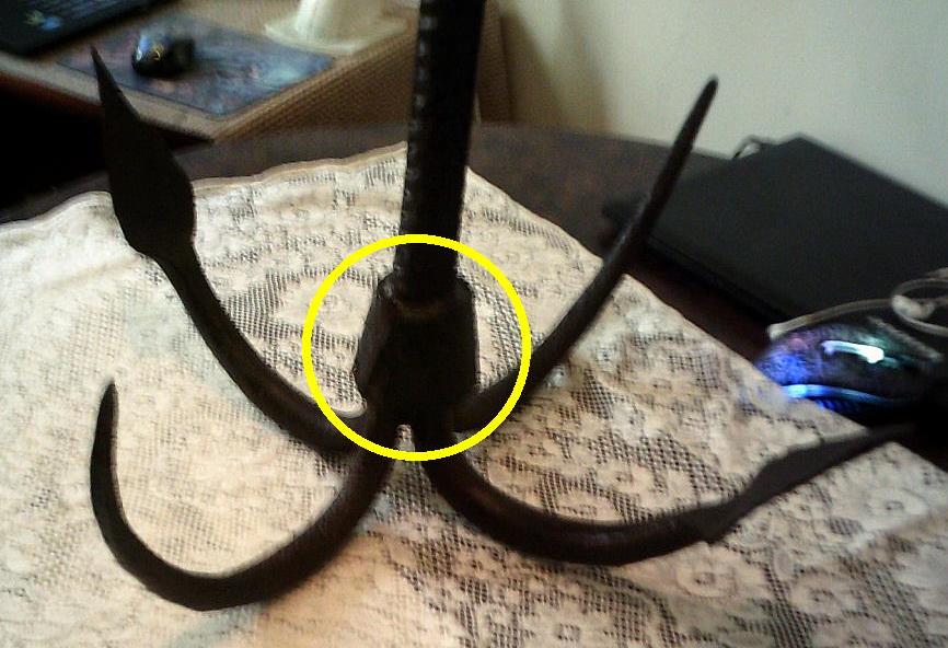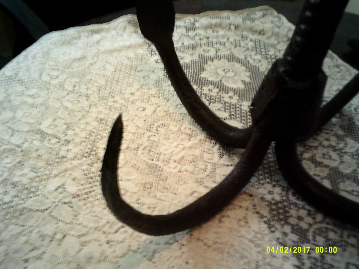 I have recently acquired a huge grappling hook/anchor whose central shaft is made from rebar. I know many of the modern types are made of such, but this piece looks very old, at least early 19th c.