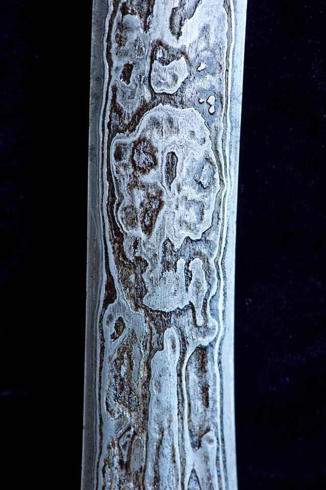 Yes, this assymmetry continues along the gandik side throughout the sogokan area, too. And that despite signs that also the wadidang side lost substance in front of the ri pandan... Quite odd since one wouldn't expect much wear towards the base of the blade to begin with. Thus, you might be correct that the blade could have been quite a bit wider.