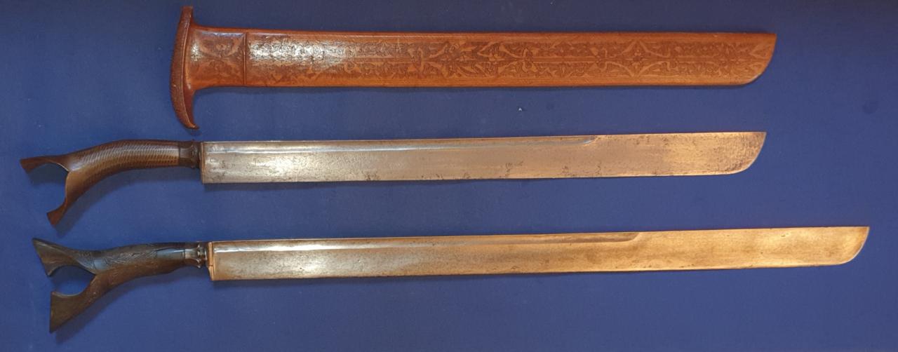 Both beautiful sikin panjangs. As you know, these blades wandered through the regions upnorth (Aceh, Alas, Gajo, even in the Batak regions). In the smaller sikin you can clearly see the 'evidence' of such wandering. The motif at the tip of the scabbard is Gayo style, while the sikin itself and the other motifs carved in the scabbard are Achenese. I like these kind of 'crossculturals' a lot. Regards, Maurice Last edited by Maurice; 25th October 2024 at 05:08 PM. Reason: Addition |