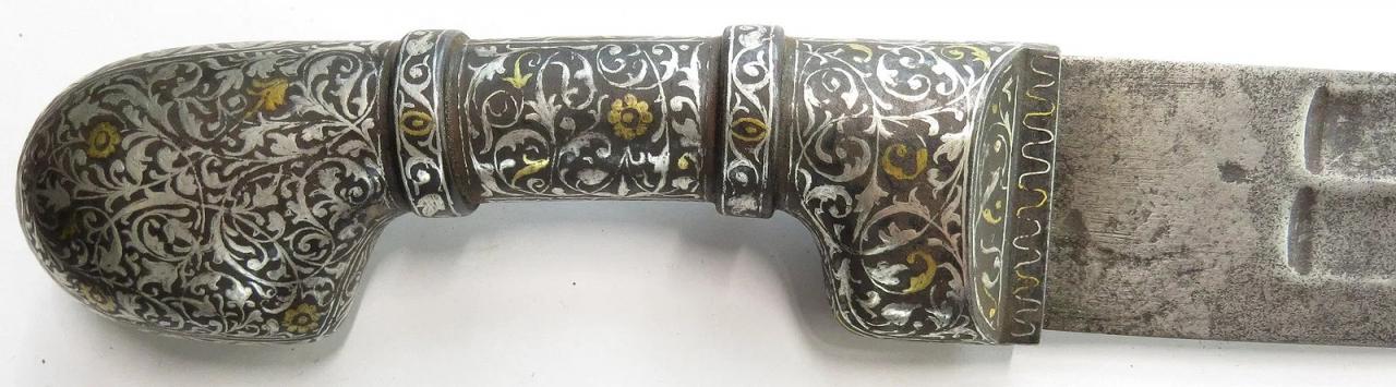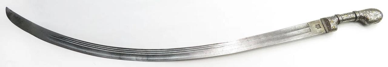 I had this Shashka for a while now. It's pretty big! Over 40 inches! But it's light. The owner must have been a big guy! Did some research on it and pretty much understand the sun and the moon/stars/sun symbolism and the use of European/German/Hungarian blades in the Caucasus. I do have a more difficult time reading the Persian or Arabic makers marks on the blades! If anyone can assist with translation that be great! I know it is probably the maker's name. But if the blade is European manufacture why did the bladesmith from the Caucasus put his marking/stamp on the blade (or maybe he just did the hilt, which most likely he did do! And that's why the mark). A while back someone suggested the translation is: WORK OF GHASI BABR(?). The blade is somewhat worn and has pitting but apparently, it's very well made because it gives out this loud ringing sound when I flick it:-) No scabbard, unfortunately:-(