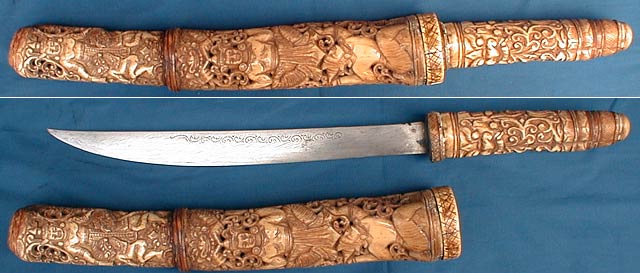 Also see at the bottom of this series of pictures the Monk's looking at these type knives: http://www.vikingsword.com/vb/showpo...10&postcount=8 Here is also another great thread I pulled out of the archives is: http://www.vikingsword.com/ubb/Forum1/HTML/002295.html The most valuable are those who are blessed by well know/ famous Buddhist Monks. In this sense these type of special blessed knives are considered "amulets" If you search on ebay, "Thai Knife" in addition to fruit carving knives, you will see priest/ lucky knives which can be as small as 1-3 inches and of course much larger full size knives. |