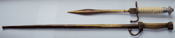 I might be going round in circles with this idea. Look at these bayonet inspired knives/daggers. I recently received the Lebel bayonet as a match for the French West African bayonet inspired dagger. As you can see it is very closely observed. As is the item in this link-
