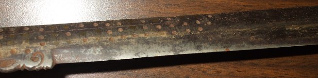 I recently purchased this Mandau at a local auction, and was wondering if anyone could help with approximate age, or if it is a dance piece vs a functional sword. The blade has shallow designs along the top edge, and several piercings, some of which appear to have inlaid brass dots in them. It is fairly sharp and thick as well. I know that the blade could use a bit of cleaning, and that the small blade is gone from the back, but that's about the extent of my knowledge about this piece. Any help on this would be appreciated.