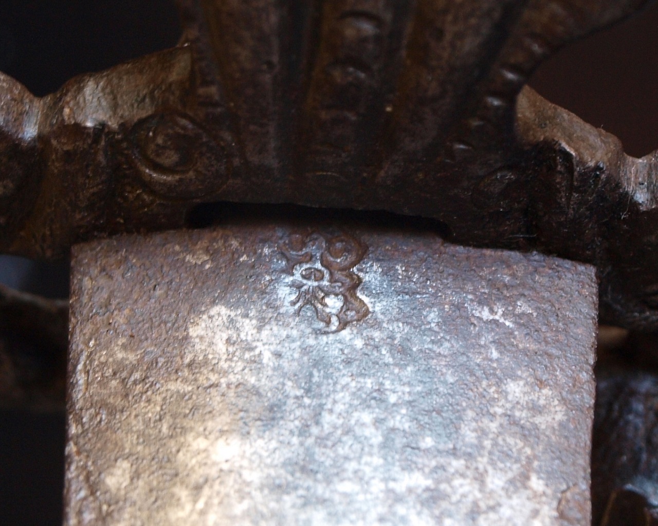 I cleaned the mark of one of my swords a bit more (identified here: http://www.vikingsword.com/vb/showth...light=lionhilt) and some more details on the upper side came out. Maybe that helps to identify the mark this time. Looking forward to your comments. Best regards Andreas |