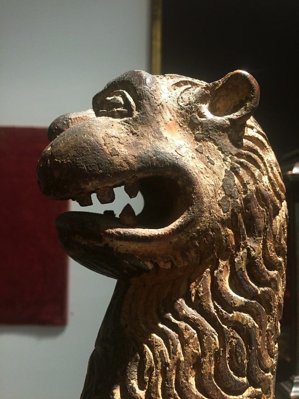I also had a "deja-vu"-like reaction as it reminded me of some Indian tiger-shaped hilts that were very fashionable during the reign of Tipu Sultan. However, these hunches can be very misleading sometimes, so I would treat them with caution.