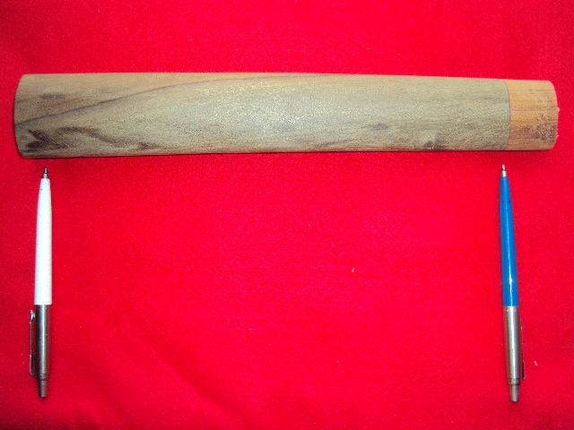 I have thankfully made progress with the new gandar and part of the buntut. Please see the pic. The measurements at the point of the white Parker pen are: width: 47 mm (1,85 inch); thickness: 25 mm (1,0 inch). Measurements at the point of the blue Parker: width 42 mm (1,65 inch); thickness 20 mm (0,79 inch). I give these measurements because I am requesting your kind comments, as I do not have a complete Bugis scabbard to copy from. If you think I must take off some more wood to make this gandar typical, please offer advice. The buntut will lose a few millimetres in length when I prepare it for the little flange thingy, which will stick out a bit like a rim.