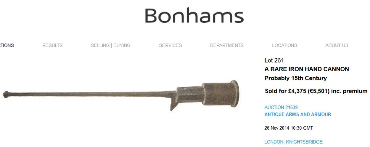 Apart from a tiny number of huge bronze pieces of artillery, all Steinbüchsen were made of iron, with 95 per cent of them being wrought, and only the rest cast. The rear part of the gun in discussion, including the octagonal breech and the hook, may be old and original; it is mostly the round barrel that definitely raises the author's doubts. Its surface lacks the irregular traces of the hammer clearly seen on the rest of the gun, and its patina does not match that of the whole of the rear portion either; it looks much smoother than the rest, covered by a lichen like patina not found on the rear section. The catalog description, too, was quite careful reading "probably 15th century"; the author begs to differ in being quite sure that it is not, at least not throughout. The provenance from the Jeanne & Robert-Jean Charles collection is not a certificate of authenticity by itself; all it stands for is that the piece, in its present form, already existed in the 1930's when the Charles' started forming their collection. Like all collections comprising many hundreds, or literally thousands of various items, instead of concentrating all the collector's expertise on one special period, field and type of weapons, the Charles collection contained some fine items as well as a large nuumber of heavily altered, doubtful or definite Historismus pieces made in the Victorian period - by the earliest. Most objects from the Charles collection were sold in several parts at the Hotel Drouot, Paris, through Ader et Tajan, starting in 1993. The item in discussion was NOT included in any of those sales. The author recalls doing extensive viewing of the earliest guns. There were several composite weapons and such showing extensive replacements and "enhancing" later and inapt decoration. Only very few items actually fetched high prices. So the author restrained to choose a Nuremberg made powder flask, ca. 1550-60, of circular shape retaining its original leather pouch, and preserved in heavily patinated original condition throughout; it was lot #110 in the first Charles sale of 13 May 1993. This was the only specimen of that type ever to appear on the market since the Kuppelmayr sale, 26 to 28 March 1895 (!), lot #576, pl. 29. That unusual type of Nuremberg manufactured flasks is recorded to have only been ordered, and made for, the Styrian arsenal at Graz, which still holds many specimens. In the second half of the 19th c. when the great central museums were founded, the Vienna arsenal and the Bayerisches Nationalmuseum München each were given one sample of that type of flasks from the Graz arsenal, and the Kuppelmayr catalog description records the Graz provenance for that flask. Best, Michael Last edited by Matchlock; 29th November 2014 at 07:57 PM. |